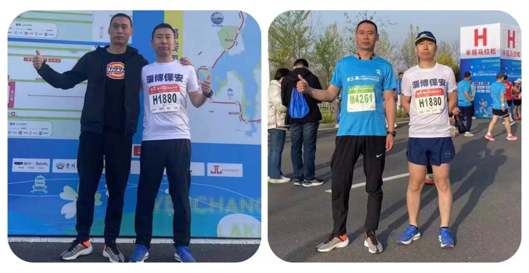 4月9日,第五屆環(huán)文昌湖半程馬拉松賽鳴槍開跑,我公司金融護衛(wèi)中心博山大隊周沛、孫華峰兩名員工報名參加了此次比賽,用實際行動踐行“運動,健康,快樂”的運動理念。